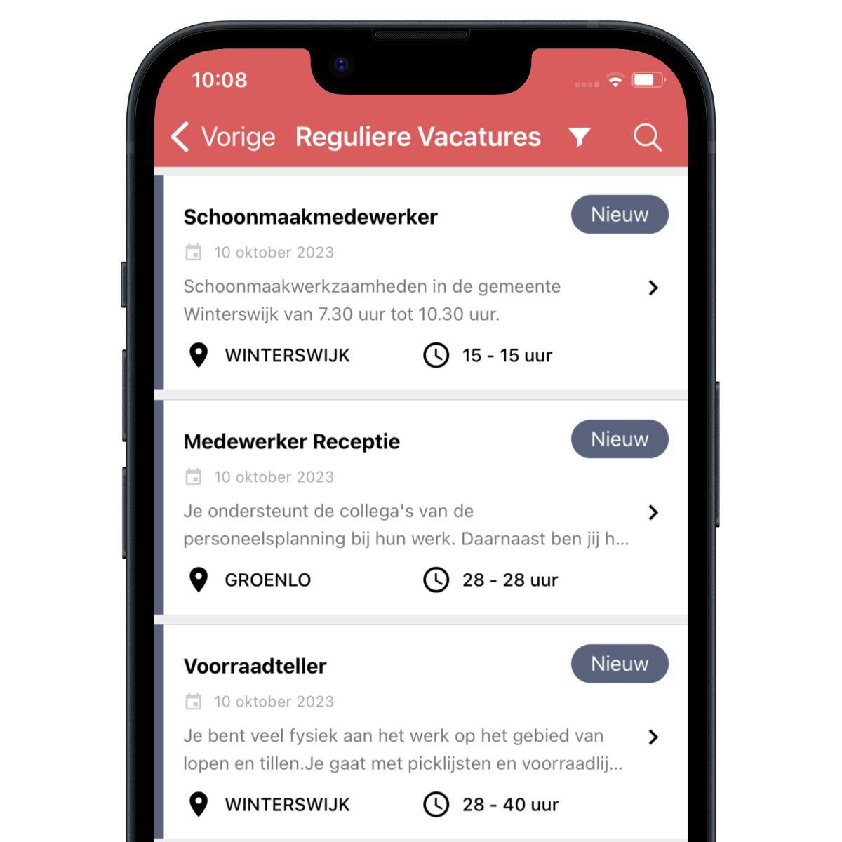 De app geeft je een duidelijk overzicht van alle actuele vacatures.